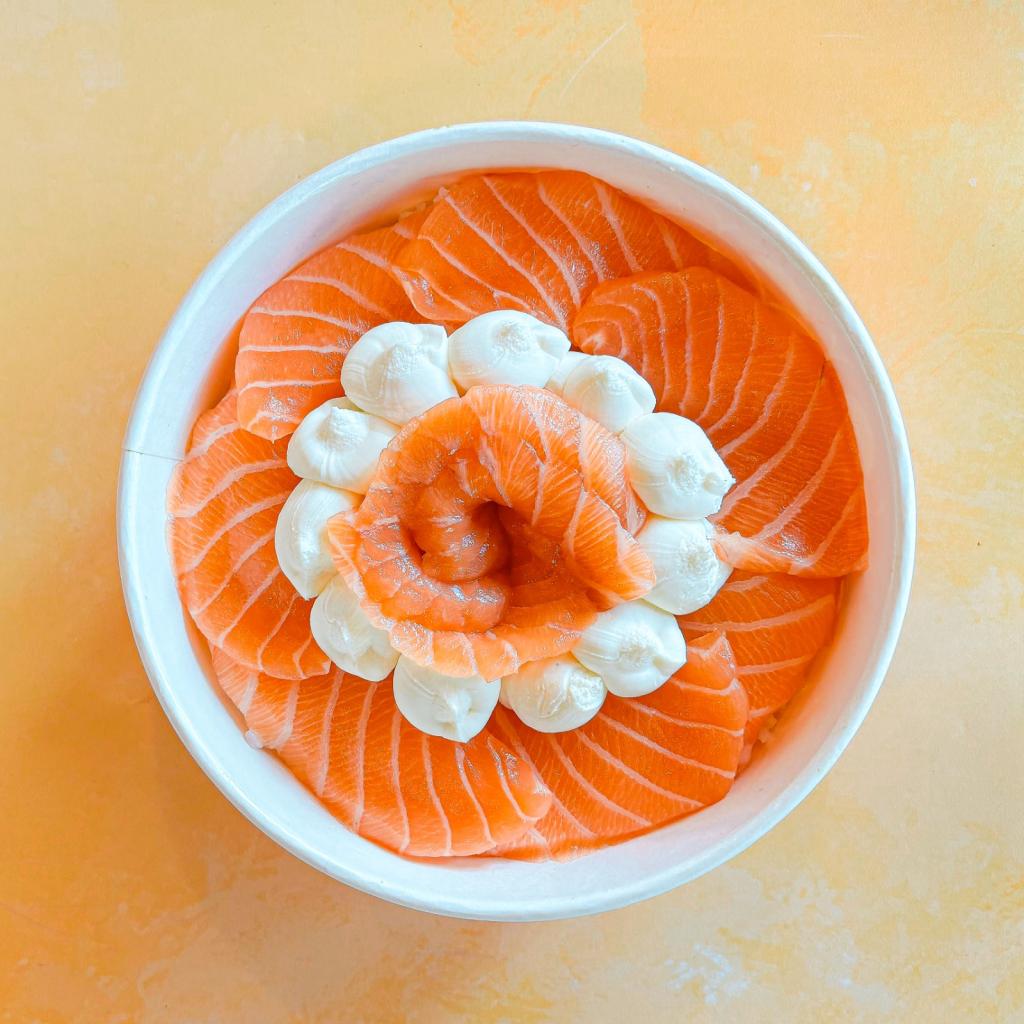 Riz vinaigré, fines lamelles de saumon, cream cheese