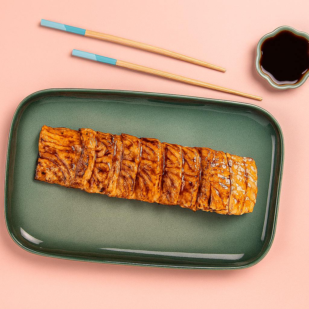 Riz vinaigré, fines lamelles de saumon, graines de sésame