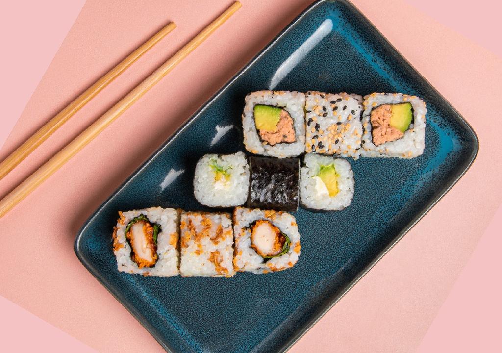 3 california thon cuit avocat,3 california crispy poulet,3 maki avocat fromage.