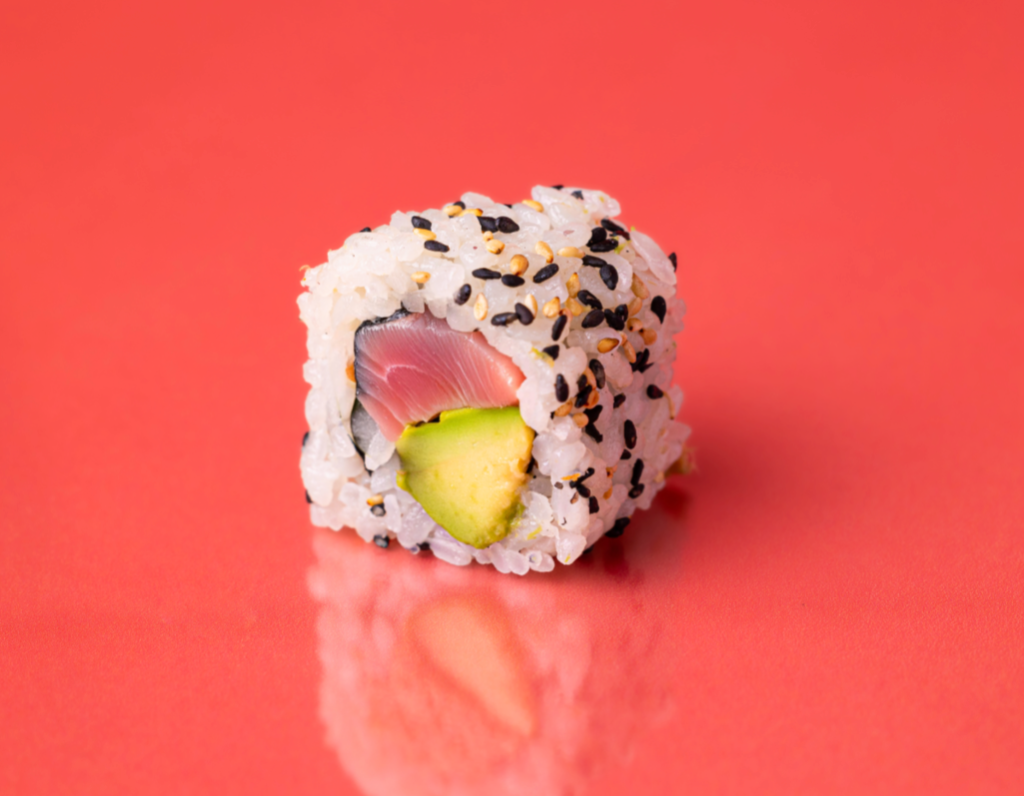Mélange thon cuit et mayonnaise, avocat, riz vinaigré, algue nori, sésame