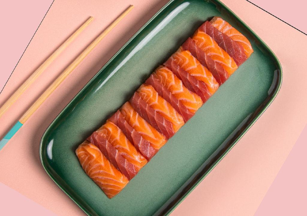 Délicates tranches de saumon et de thon frais, finement coupées pour révéler leur texture fondante et leur goût subtil.